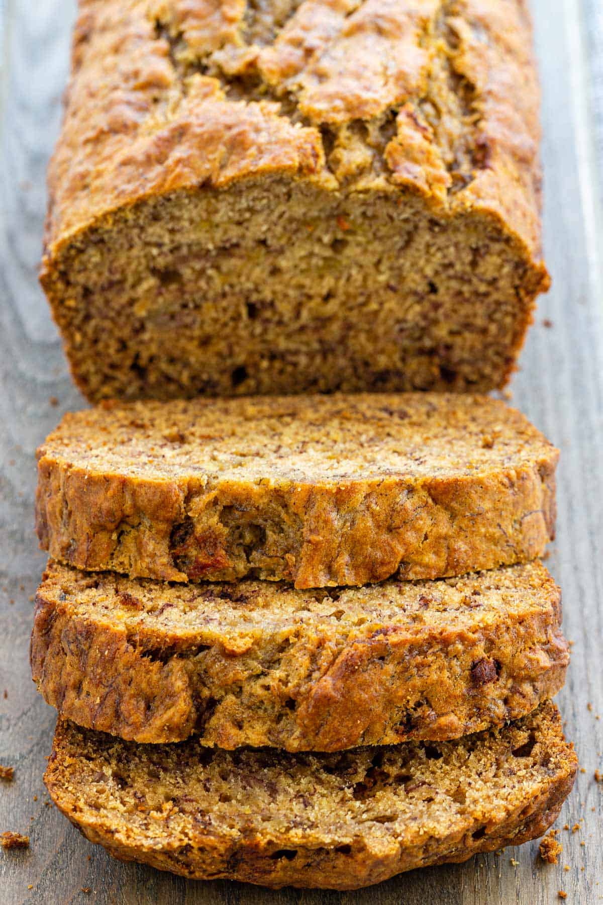 这款香蕉面包将经典的食谱提升到一个新的层次,用一个简单的技术来增强风味。煮熟香蕉,榨汁,浓缩,然后和面糊混合。结果是一片超级湿润和柔软的切片,充满了焦糖香蕉的味道。