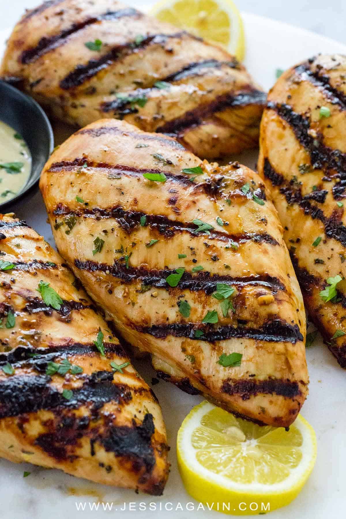 对于这款鸡腌料配方,我用鸡胸肉。他们似乎受益最多,因为肉是如此瘦和中性。腌料有助于它熬一次煮熟并为每份服务添加一层额外的味道。