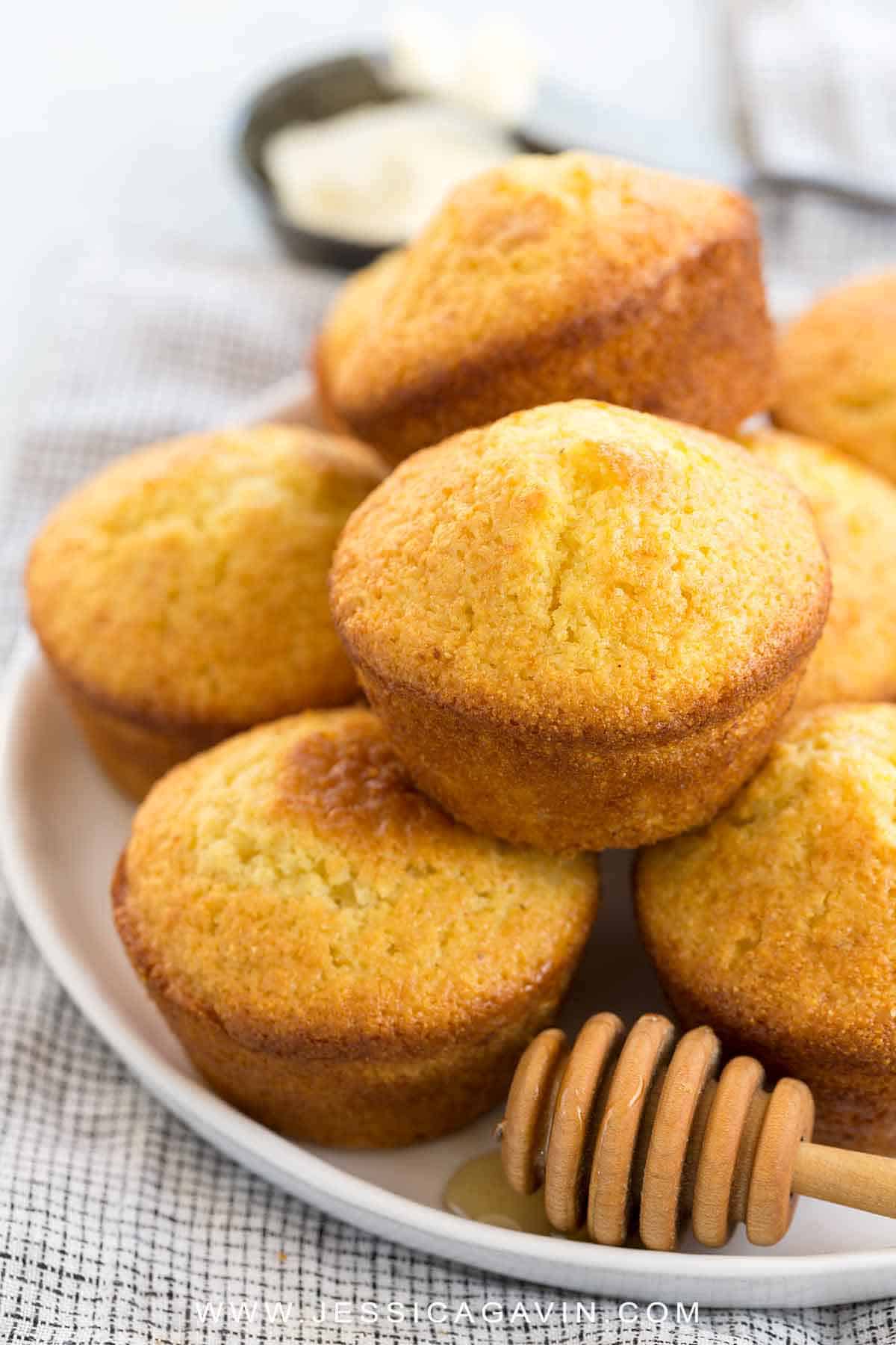 每个玉米面包松饼都用粘稠的甜蜜蜂蜜包装。这使得风味更美味,蛋糕超级湿润。蜂蜜是一种保湿剂,这意味着它吸引了水并使蛋糕保持干燥。这是我绝对最喜欢的玉米面包食谱,我已经做了无数次。我甚至试着用无麸质面粉作为基地。我发誓,与小麦粉相比,你几乎无法注意到纹理的差异。