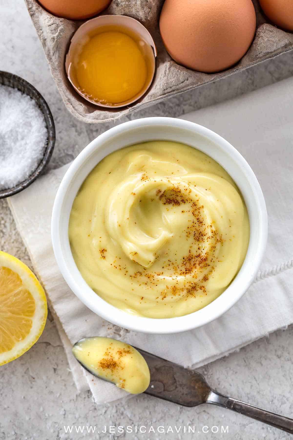 好问题!我之前从未尝试过电动搅拌机,但我不明白为什么你不能,特别是因为我只是用手工搅拌来制作我的。确保碗用毛巾或其他东西固定,以便在逐渐添加油时保持其移动。