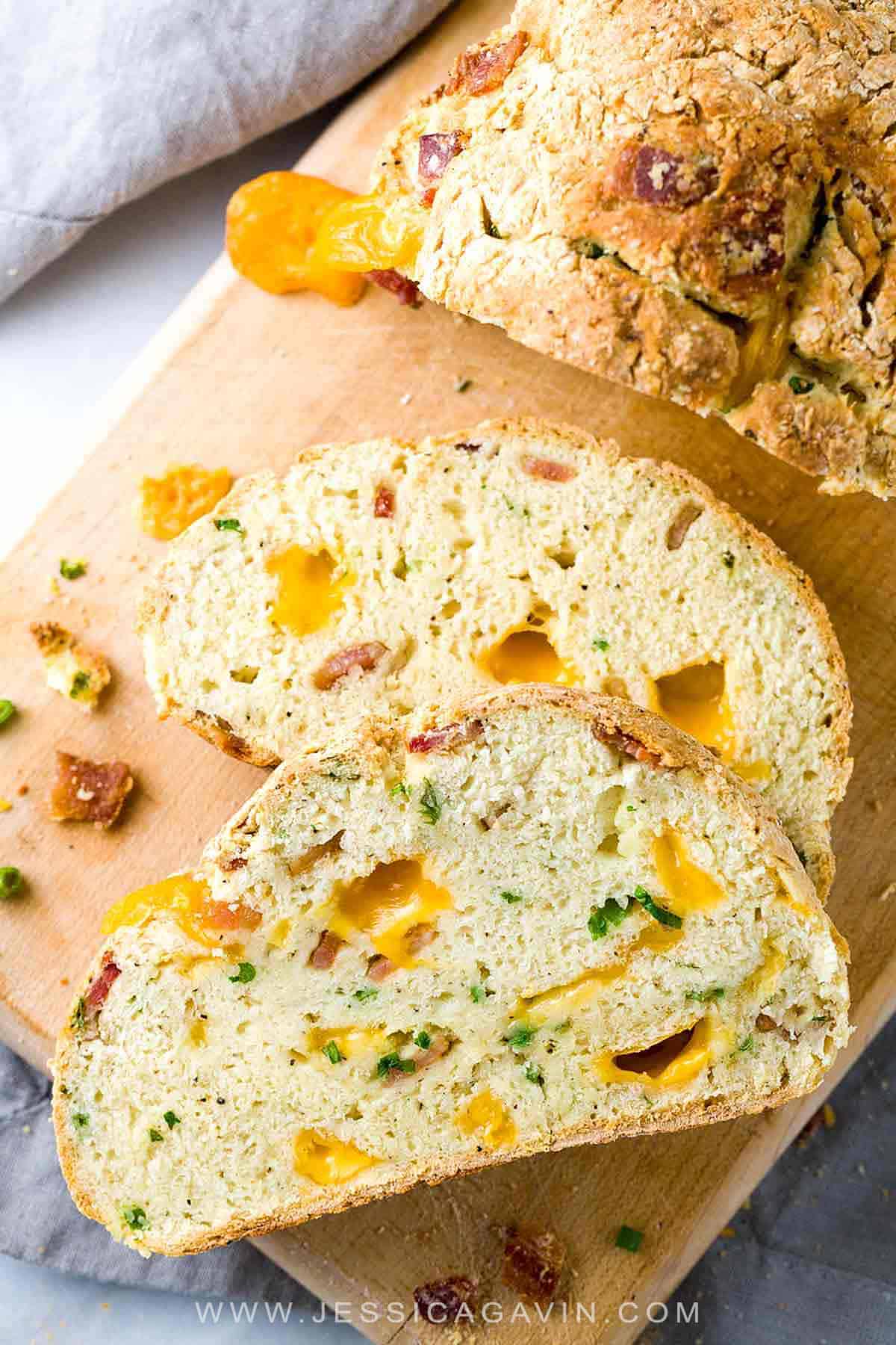 我做过传统的面包甜苏打面包在过去。然而,这位爱尔兰切达乳酪和培根苏打面包配方是我最喜欢的再生!我甚至收到了我半爱尔兰丈夫,杰森的批准印章。它可能没有伤害我纳入他最喜欢的成分,培根!