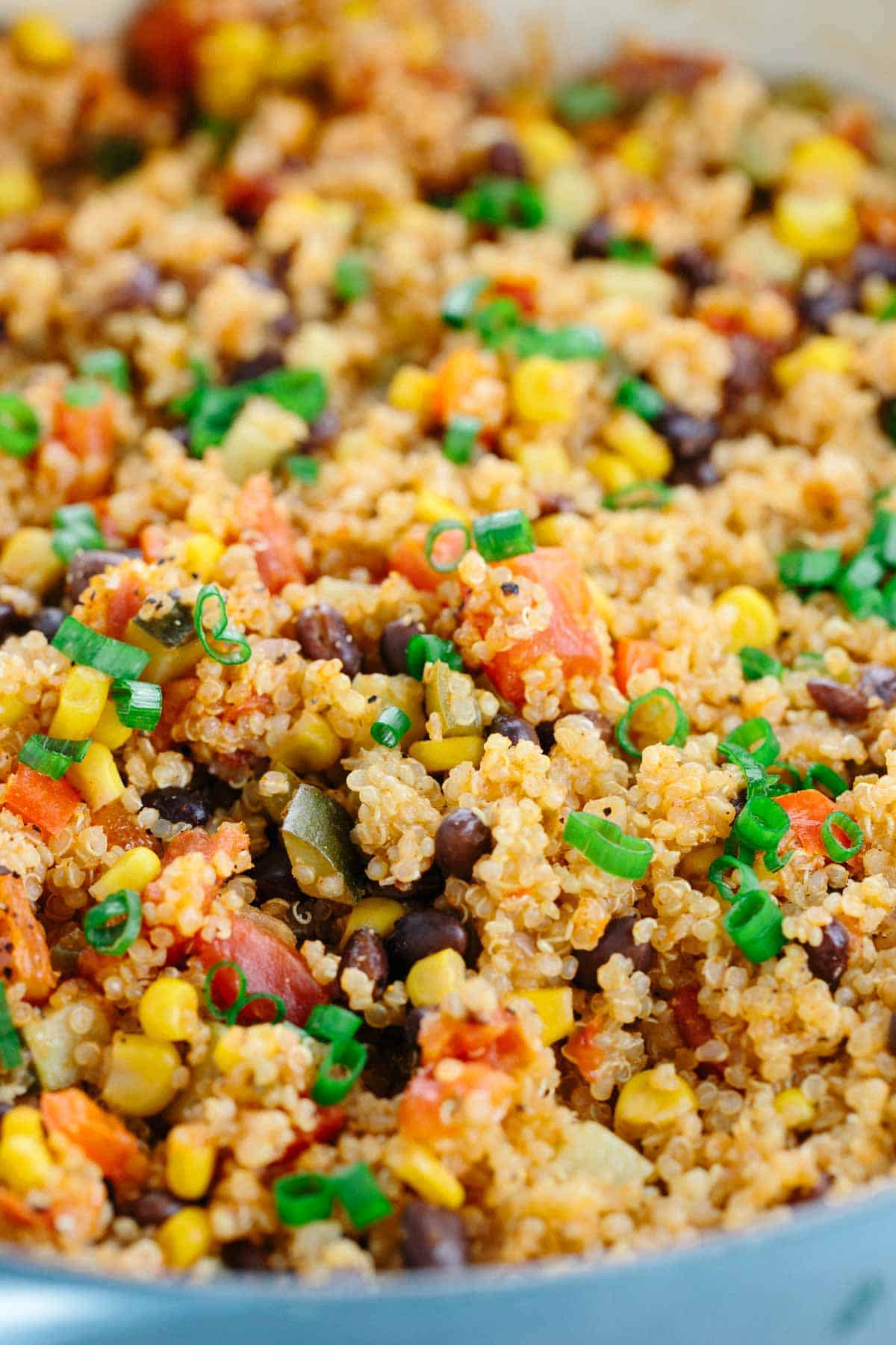 一个平底锅中有这么多华丽的蔬菜!当他们煨并煮熟时,他们只是融化在你的嘴里。我加了甜椒,玉米,西红柿,西葫芦,还有墨西哥胡椒来加点辣味。黑豆为藜麦添加了额外的蛋白质和纤维,使它成为一顿完整的晚餐。藜麦是一种独特的超级谷物,是蛋白质的完整来源,一杯可以提供高达8克的蛋白质!