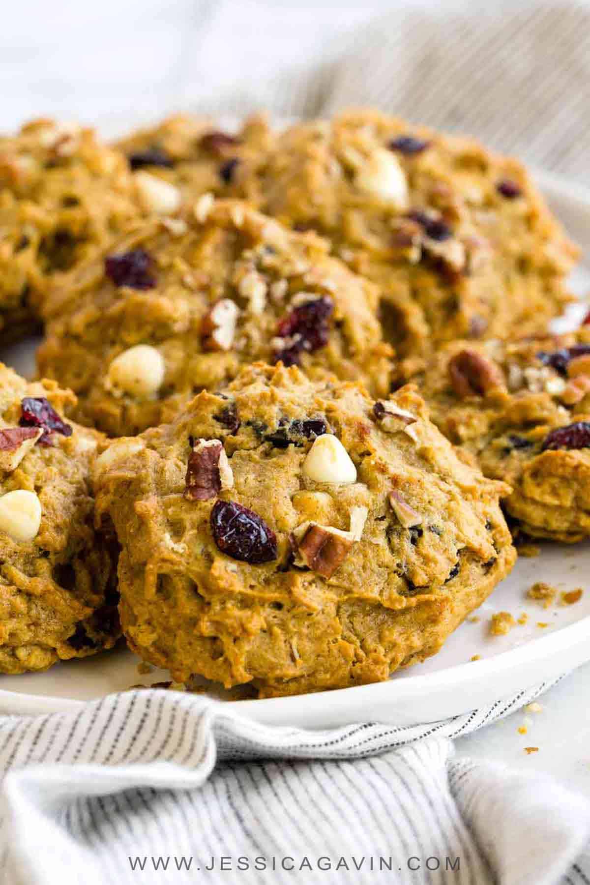 一种甜甜的柿子曲奇,有酸果蔓、白巧克力片和山核桃。一个完美的柔软和潮湿的待遇,使在假期!