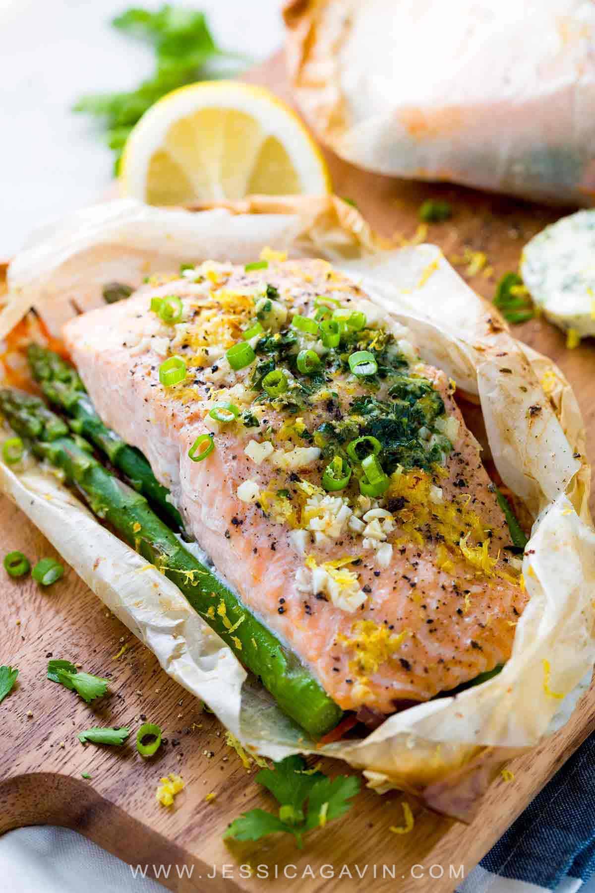 烹饪鲑鱼En Papillote是我最喜欢的方法之一。它使鱼变得如此多汁和咸味!你的照片很棒,我正在拯救你的食谱,下次我煮三文鱼!