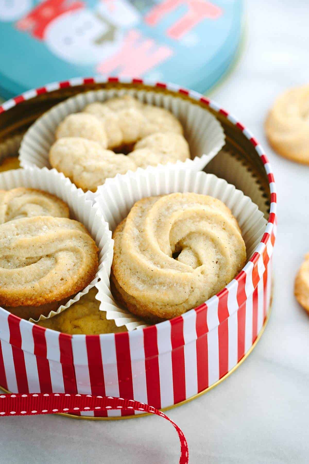 香草丹麦黄油饼干非常适合蘸茶或咖啡,因为它们非常坚固。如果你像我一样,喜欢为你生活中特别的人自制个性化的礼物,你可以自己制作饼干盒。我喜欢添加各种各样的零食米兰饼干了。烘焙快乐!