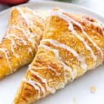 Glaze (Optional)- In a medium bowl, whisk together the powdered sugar, milk, and vanilla until smooth. Adjust with more powdered sugar or milk as needed. Drizzle over warm turnovers. It will take a few minutes to harden. Transfer turnovers to a wire rack to cool if not eating right away to prevent the bottoms from becoming soggy.