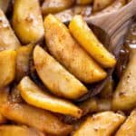取大技巧过中热熔化黄油后添加苹果、颗粒糖、棕色糖、cinnangon、cnomeg、cluves、盐、柠檬和柠檬汁saute直到苹果变嫩,但非过度软化和大部分水分释放约8至10分钟