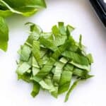 堆积中切片basil用厨师刀切叶交叉需要时用温柔摇动切成小块小心点别擦树叶快速棕色