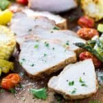 用香草和大蒜浸泡的烤猪里脊,配上各种健康的蔬菜,这是一顿简单的一锅晚餐。gydF4y2Ba