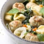 美味的意大利婚礼汤食谱!美味的健康食材,如嫩火鸡肉丸,菠菜,胡萝卜和意大利饺子面食的结合。gydF4y2Ba