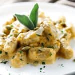 简单的全麦汤圆配南瓜鼠尾草酱只需要30分钟!这种嫩土豆面食食谱是由额外的有益健康的成分。gydF4y2Ba