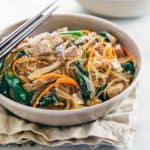 来一大碗韩式豆腐玻璃面吧!每一口都含有健康的蔬菜和植物蛋白,这是一顿美味的无麸质餐。gydF4y2Ba