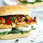 烤鸡肉意式烤面包三明治,新鲜番茄,厚片马苏里拉奶酪,浓郁的香醋酱,都放在ciabatta面包上。gydF4y2Ba