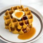 我把我的华夫饼放在一个全包的华夫饼熨斗上烤5-6分钟(设定5)。配上黄油、枫糖浆和温暖的南瓜黄油。gydF4y2Ba