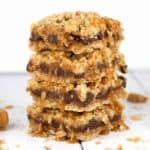 颓废而不可抗拒的焦糖巧克力棒是用有嚼劲的燕麦饼干做成的。一种很容易做,甚至吃起来更美味的甜点!gydF4y2Ba