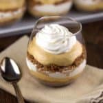 无烘焙南瓜芝士蛋糕在单独的杯子!光滑和颓废的层全麦饼干外壳,南瓜芝士蛋糕,和奶油。gydF4y2Ba