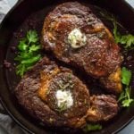 厚切肋眼牛排配上简单的红酒还原酱。这个食谱使用了反烤的方法来确保牛肉多汁,完全煮熟。gydF4y2Ba