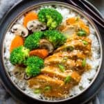 将照烧鸡与茉莉花饭、糙米、花椰菜饭或西兰花饭一起食用。gydF4y2Ba