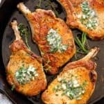 如果排骨很厚,可以在两面都烧焦后,在350ºF(177ºC)的烤箱里完成。煮到内部温度达到140ºF(60ºC),大约6到10分钟。休息5到10分钟后食用。gydF4y2Ba