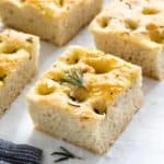简单的佛卡夏食谱,产生厚软片美味的意大利面包。用酵母发酵的面团由橄榄油、新鲜迷迭香和盐制成。gydF4y2Ba