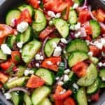 美味的黄瓜番茄沙拉,配以浓郁的红酒醋沙司。一个健康的夏季配菜,补充任何一餐。gydF4y2Ba