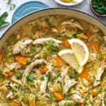 每一碗柠檬鸡汤里都有鲜嫩的肉片和丰盛的蔬菜,再加一点柠檬汁,让汤有明亮的柑橘味。gydF4y2Ba