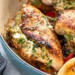 一个美味的低碳水化合物的托斯卡纳风格的填馅鸡食谱混合菠菜,香草,奶酪和晒干的番茄。gydF4y2Ba
