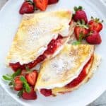 草莓可丽饼很容易做,配上新鲜的果酱,再配上一份自制的鲜奶油。gydF4y2Ba