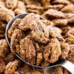 自制的蜜饯山核桃,带有香甜的波旁威士忌的味道,是一种美味的小吃或用于沙拉配料,熟食板,和节日礼物。gydF4y2Ba